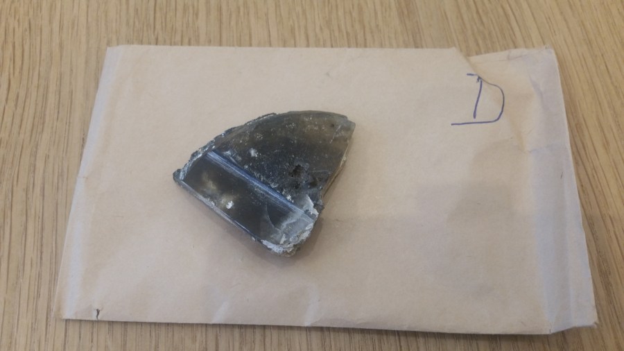A fragment of fused metal and plastic from the outer shell of the ‘saucer’ (Copyright Dr David Clarke)