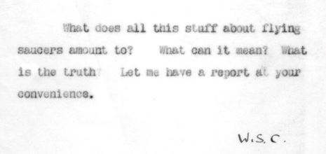 Extract from Winston Churchill’s 1952 request to the British Air Ministry on ‘flying saucers’ (TNA: PREM 11/855)