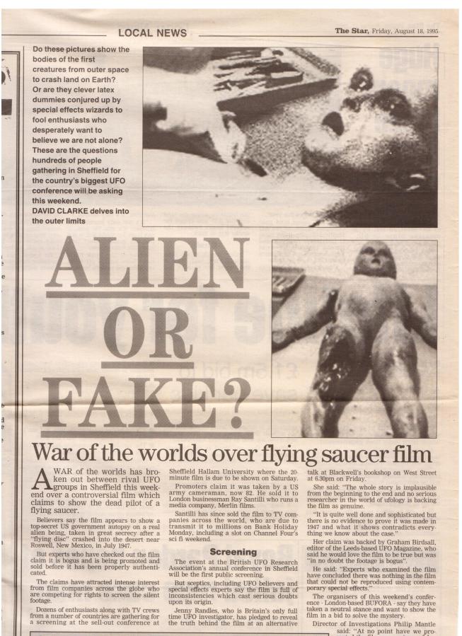 War or Words over flying saucer film: my inside story, published on p6 of the Star, 18 August 1995