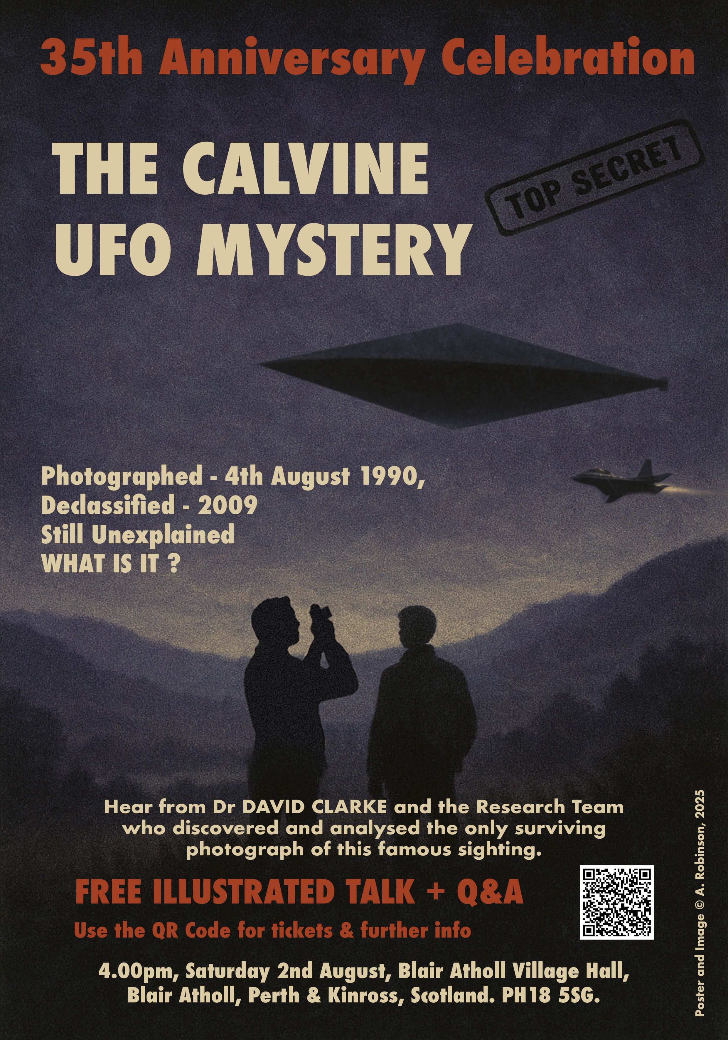 The Calvine UFO photo has become world famous and rivals the Loch Ness monster as unsolved Scottish mystery. Currently it remains unsolved, and the final piece of the jigsaw is missing. It could be a hoax however it could also be a genuine photograph of an unidentified flying object.